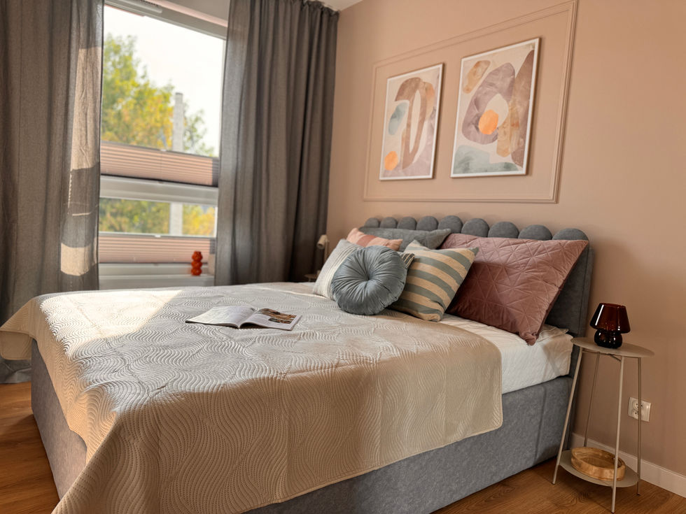 Mieszkanie wyposażono w wygodną sofę z funkcją spania i 10-letnią gwarancją, co dodatkowo podnosi wartość inwestycji.